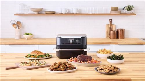 Disfrute sin culpa y prepare excelentes comidas familiares con la freidora de aire Ninja Foodi FlexDrawer DualZone. Con el cajón de cocción FlexDrawer, pase de 2 zonas de cocción independientes a una única zona de cocción MegaZone gracias al divisor extraíble. Tecnología de doble zona: cocina 2 tipos de alimentos de 2 maneras diferentes simultáneamente, con tiempos de cocción sincronizados automáticamente. Gran capacidad familiar: hasta 10,4L, 8 personas. Cocción flexible: Retire el divisor para crear un…